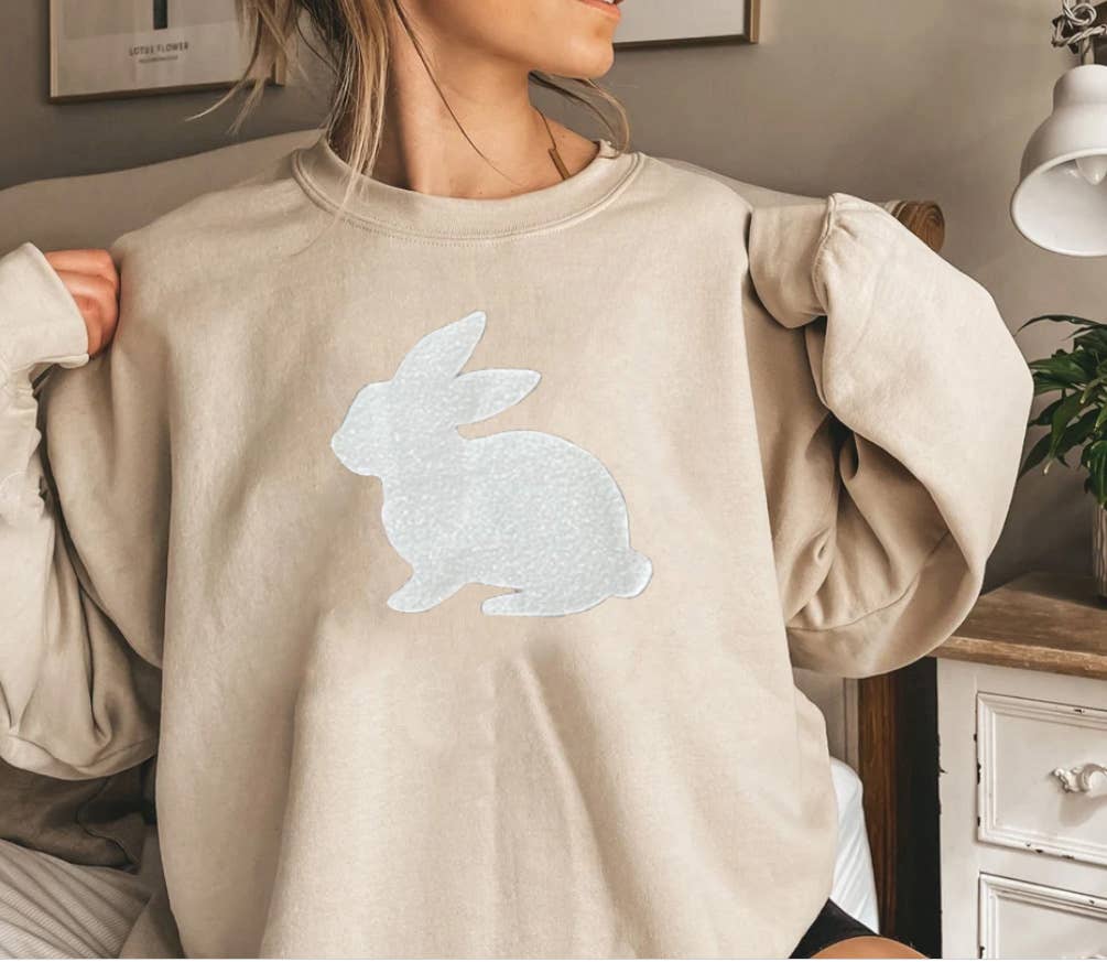 Bunny Glitter Sweatshirt, Happy Easter Sweatshirt, Glitter Rabbit Crewneck, Rabbit Pullover, Gift For Easter, Sweatshirt