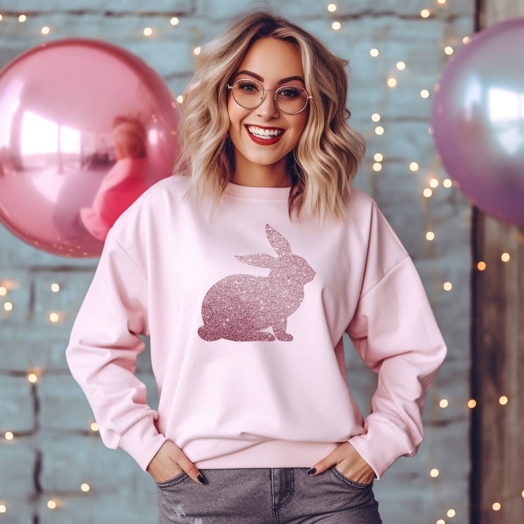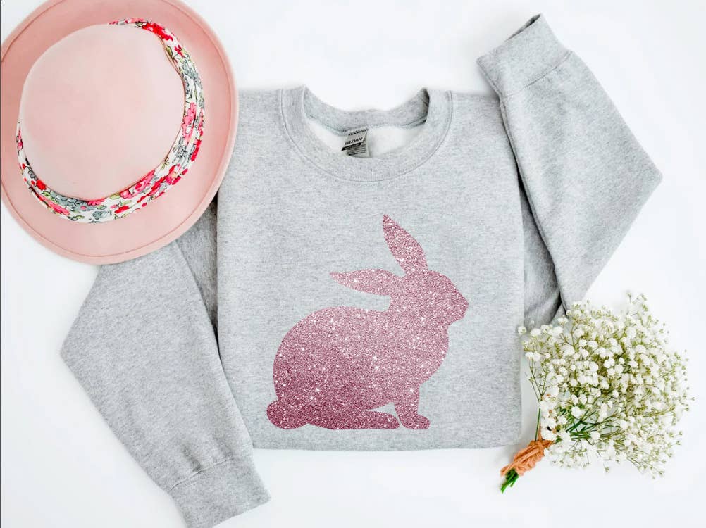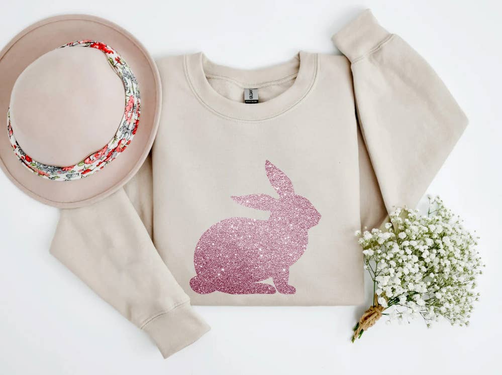 Bunny Glitter Sweatshirt, Happy Easter Sweatshirt, Glitter Rabbit Crewneck, Rabbit Pullover, Gift For Easter, Sweatshirt
