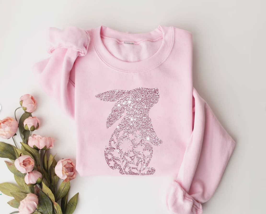 Bunny Glitter Sweatshirt, Happy Easter Sweatshirt, Glitter Rabbit Crewneck, Rabbit Pullover, Gift For Easter, Sweatshirt