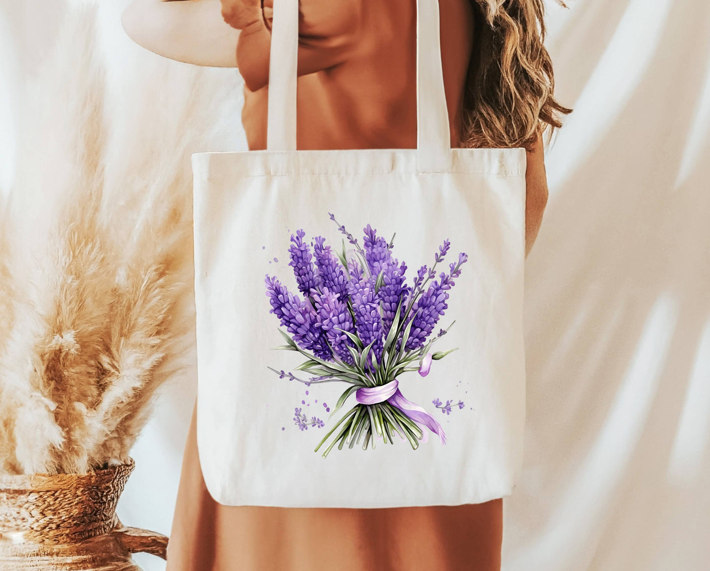 Farm Fresh Canvas Tote, Reusable Grocery Bag Floral, Lavender Tote bag Valentines Gift Bag, Flower tote gift for friend
