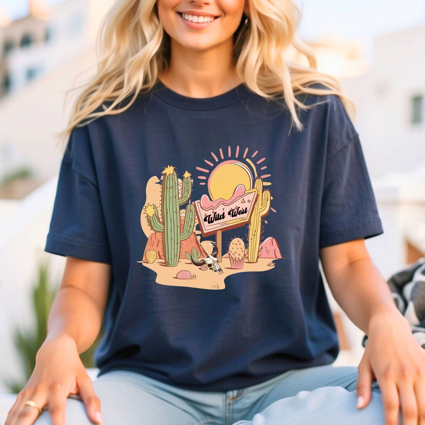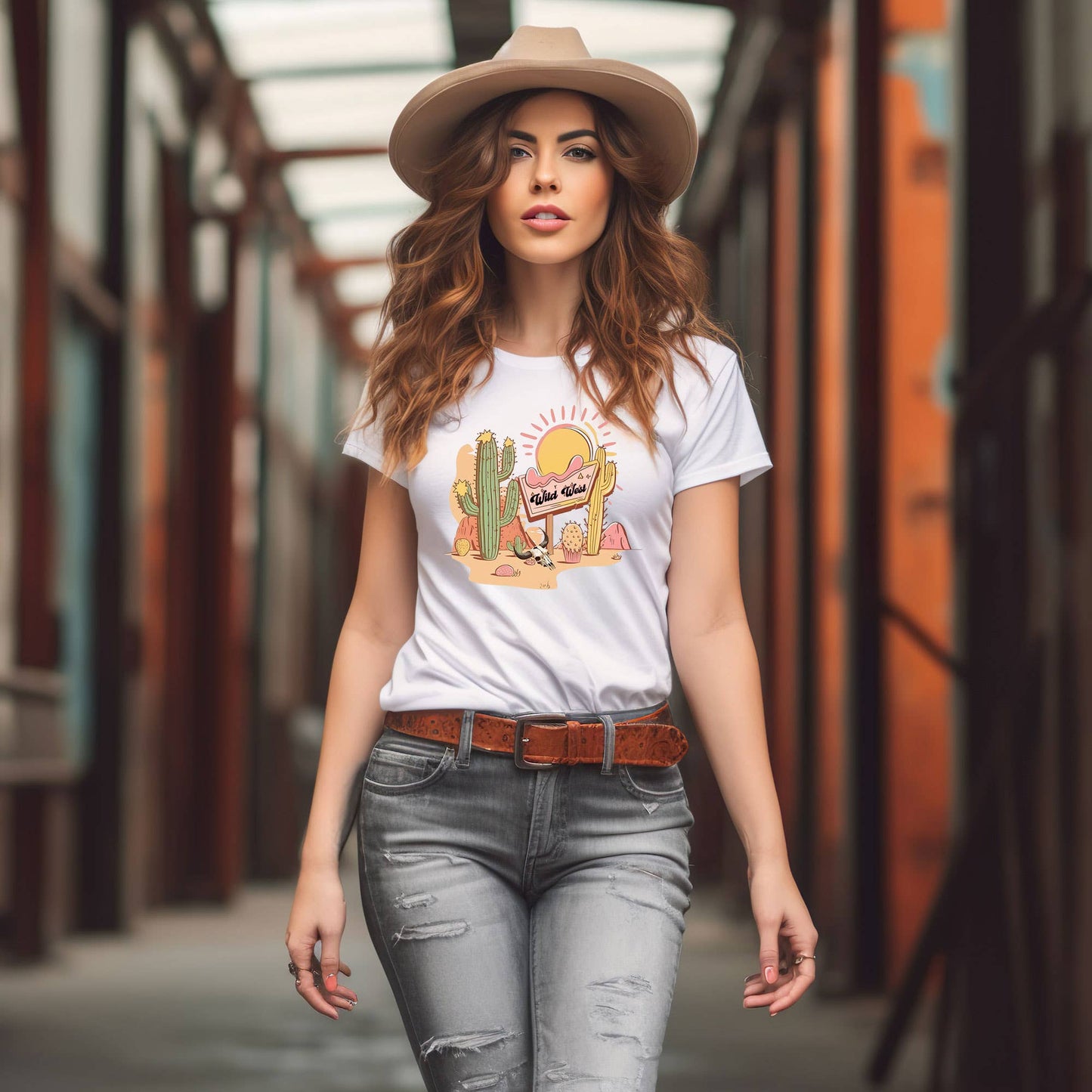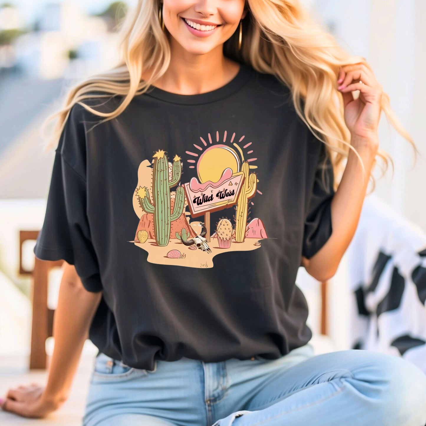 Retro Western Wild West, Cactus, Cowgirl, Graphic Tshirts
