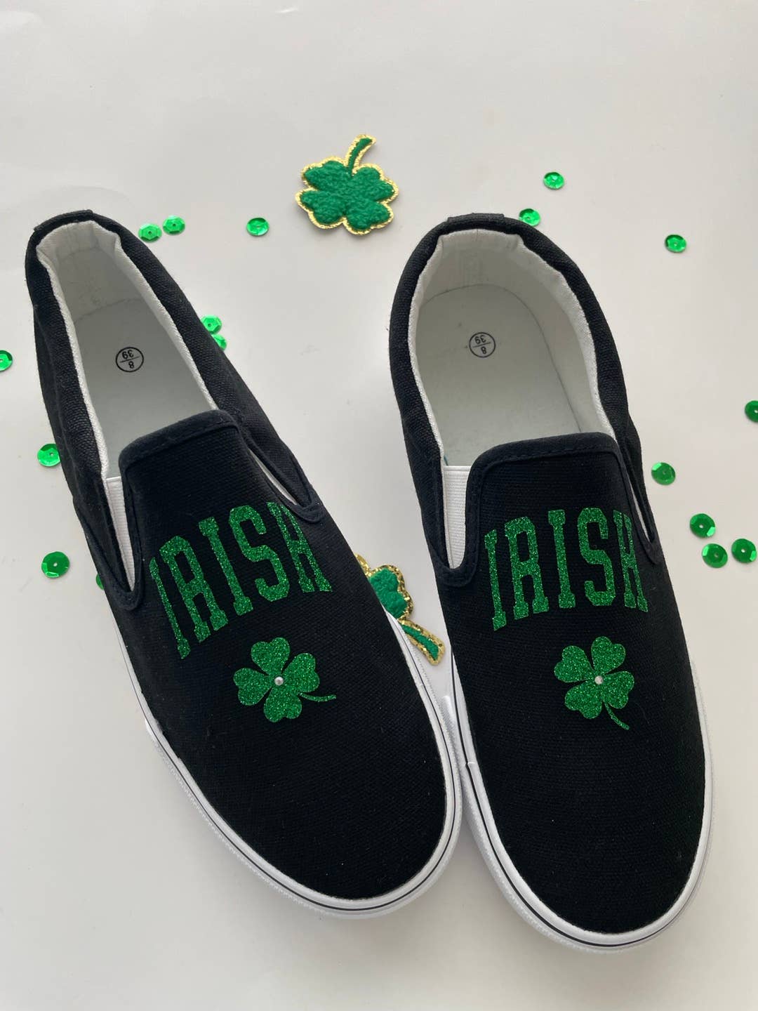 St. Patricks day shoes , glitter shamrock shoes - irish slip on shoes - St. Patricks day shoes